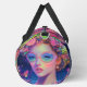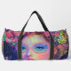 Ein atemberaubendes surreales Fantasieportrait einer strahlenden Frau, die mit leuchtenden Pastellgläsern und einer Krone aus neonfarbenen Blume und Obst geschmückt ist. Set gegen eine kosmische Blumentraumwelt mit schwimmenden Schmetterlingen, dieses digitale Kunstwerk strotzt vor Farbe, Magie und femininer Energie.