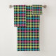 Gingham-Muster mit rosa, grün, blau, gelb und schwarz.