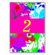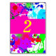 Schöner Spritzer, Neoneffekt Tischnummer Karten in Rosa, Grün, Blau und lila. Ändern Sie die Farbe von Rosa Hintergrund und Schriftart zu Ihrem Favoriten.