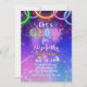 Niedliches Neonglühen Party. Neonfarben grün, blau und lila mit Sternen.