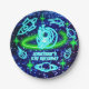 Neon glühende Blue Outer Space Rocket Ship Boy's Pappteller