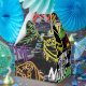 A vibrant, seamless vector pattern featuring dripping graffiti-style game controllers, urban brush strokes, and "Play Now" typography on a dark background.