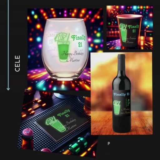Ein Drink in Ihrem 21. Geburtstag Party; Neon grüner Schirm-Drink mit grünem Text, der schließlich 21 und Geburtstagstext mit Ihrem Namen sagt.