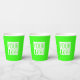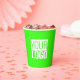 Solid-Farbe Papier Cups in Neon grün - solide Farbe Hintergrund und ein Cover-Logo . Personalisieren Sie es jetzt. Modernes und trendiges Design von Alma Wad für Party.