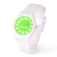 Mit dieser ultraneongrünen Armbanduhr in leuchtendem, fluoreszierendem Neon, die mit Namen oder Text personalisiert ist, tauchen Sie ein in die Menge. Mit dieser modernen, soliden und weißen Uhr machen Sie einen fröhlichen und frischen Stil.