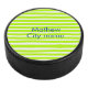 Neon green yellow retro stripes add name cityplace eishockey puck