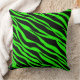 Helle neongrüne Zebrastreifen bedecken dieses phantastische, quadratische Kissen.