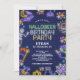 Neon Halloween 9. Geburtstagsparty Einladung für Kinder, die zu Halloween Zeit neun Jahre alt werden.