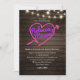 Neones Hochzeitszeichen, neonrosa Herz mit neonfarbenen lila Namen und Lichtern, boho rustikale glamouröse Scheune Hochzeitseinladung mit neonrosa Herz und Pfeil und fett handgeschriebene Vornamen im Herzen. Beliebtes Stallholz und duftende Streichelleuchten rustikale Hochzeitseinladung enthält traditionellen Text mit beiden Elternnamen. Fühlen Sie sich frei, die rosa und lila Farben zu einem anderen Neon Favoriten zu bearbeiten und Text wie gewünscht zu ändern.