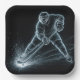 A striking neon sketch of a hockey player in motion against a dark background captures the energy and speed of the athlete with detailed lines and sparks flying as the skate hits the ice.