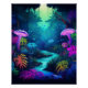 Neon Jungle mit glühenden Pilzen und Pflanze Poster