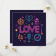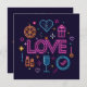 Dieses avantgardistische Design vereint die neonische Retro-Ästhetik mit modernen digitalen Elementen. Glühende Typografie in lebhaften Pop vor einem dunklen Hintergrund, die einen elektrisierenden visuellen Effekt erzeugt. Liebe und Hochzeitssymbole im Neonstil sorgen für spielerische Romantik. Subtile Schaltungsmuster bringen eine futuristische Touch. Ideal für technisch versierte Paare, Hochzeitsfeiern in der Stadt oder für Nachtklubs.