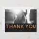 Ein Abschluss danke Ihnen Karte in einem horizontalen Format, mit Ihrem Lieblings-Foto überlagert mit einem schwarzen Rechteck und "danke" in Neonlichter Schriftart. Personalisieren Sie Ihre Abschluss-Details und eine Notiz auf der Rückseite.