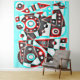 Abstrakte geometrische Kunst in Blau, Schwarz, Rot und Weiß von R. Trickett.
