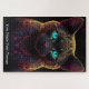 Dieses faszinierende Puzzle mit seinen majestätischen, schwarzen Katzen, beleuchtet mit leuchtenden Mandala-Neonmustern. Die komplexen, symmetrischen Designs fließen durch sein Fell in lebhaften Farbtönen von elektrischem Blau, feurigen Orange und Magenta. Die türkisblauen Augen der Katze scheinen mit mystischer Energie zu leuchten und zeichne einen in ihren rätselhaften Blick. Set auf schwarzem Hintergrund, lebendige Linien und strahlende Details schaffen einen blendenden Kontrast und machen jedes Puzzleteil zu einem Kunstwerk. Eine atemberaubende Mischung aus Fantasie und Eleganz, perfekt für diejenigen, die Katzen, Farbe und kosmisches Rätsel Liebe.