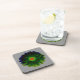 Dieser phantastische Kork-Untersetzer zeigt ein Foto einer riesigen Blume, die manipuliert wurde, um eine wunderschöne Neon-Blume mit einem hellen rot-grünen Zentrum, umgeben von Blütenblättern mit subtilen Gelb-, Grün- und Blautönen. Die Blume liegt auf einem schiefergrauen Hintergrund, um das helle Zentrum zu unterstreichen und ein stimmungsvolles Ambiente zu schaffen.