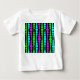 Dieser Baby T - Shirt hat ein modernes Design von neonrosa, grünen und blauen abgerundeten Rechtecken in steigender und abnehmender Größe, die vertikal auf einem schwarzen Feld laufen.