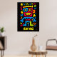 Helles Neon-Monster-Poster in lebhaftem Rot, Gelb, Blau und Grün. Ein Pop-Kunstdesign aus der Neon Noise Collection, das sich perfekt für Halloween-Partys, Kinderzimmer oder moderne, farbenfrohe Dekoration eignet.