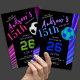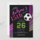 A vibrant and modern invitation card designed for a teen birthday celebration, featuring a bold black base with colorful motion-style accents, expressive typography, and a clean soccer graphic, with all text, numbers, colors, and design elements fully editable to create a fun, sporty, and personalized birthday invitation that feels energetic, stylish, and perfect for teens who love modern sports-inspired designs.