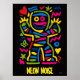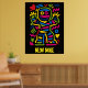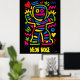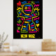 Helles neon-Mumie-Poster in fluoreszierenden Streifen aus Rosa, Blau, Gelb und Grün verpackt. Ein Pop-Design aus der Neon Noise Collection, das sich ideal für Halloween-Partys, Kinderzimmer oder eine lebendige moderne Wanddekoration eignet.