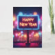Neon neues Jahr Reklametafeln mit Feuerwerk. Inside text ist bearbeitbar.