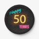 Neon Nummer 50 auf Ziegelwand Pappteller