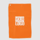 Bold and eye-catching in vibrant neon orange, this branded golf towel features a large central logo and is ready for instant personalization. A sleek, modern design by Alma Wad—perfect for golfers who want style with their performance.