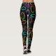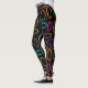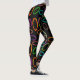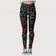 Diese Leggings haben ein geometrisches Design von Gruppen von drei Ovalen in Neonfarben, verteilt auf ein schwarzes Feld.