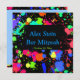 Neon Paint Spritzer, Paint Ball Bar Mitzvah Einladung. Funky leuchtende Neonfarben auf schwarz schaffen ein lustiges Design. Personalisieren Sie Ihre Texte und Ihren Schriftart. PAPIERNAPKINS, TISCH KARTEN, WASSERFLASCHENETIKETTEN, POSTAGE-BRIEFMARKE, PLATZKARTEN UND DANKE, DASS IHNEN AUCH IN DIESEM DESIGN DIE KARTEN ZUR VERFÜGUNG STEHEN