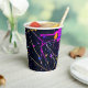 Neon Paint Spritzer Party Paper Cups. Funky abstrakter Spritzer in dunkelblau, lila, neonorange, aqua, violett, blau.