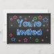 Diese Einladung ist hell mit Neontext und Sternen. Passen Sie den Text auf der Rückseite an und Sie sind gut zu gehen für jedes Party oder Event, für das Sie gewollt haben!