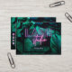 Fügen Sie Ihren Namen und Ihre Kontaktinformationen zu dieser modernen lash studio/eyelash Erweiterungskarte mit tropischem dunkelgrünem Blattwerk und einem Mitternachtsblauen Rahmen hinzu. Die Wörter "Lash" und "studio" sind in lila und rosa Neontypografie mit Ihrem Namen darunter und Ihren Kontaktdaten auf der Kartenrückseite. Es gibt auch einen QR-Code, in dem Sie Ihre URL für Social Media hinzufügen können. Kontaktieren Sie den Designer, wenn Sie eine andere Farbe für den Neontext wünschen.