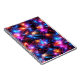 Vibrant neon abstract polygon shapes bursting with explosive sparks on a striking black background.