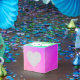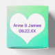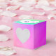 Weißes Herz mit neu verheirateten Namen auf Neon Regenbogen abstrakten Hintergrund.