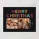 Diese Weihnachtskarte enthält zwei Fotos Ihrer Wahl und die Neonfarbe (rosa, gelb, orange und blau) Retro-Typografie "Frohe Weihnachten". Personalisieren Sie es mit Ihrem Namen und Jahr.
