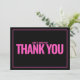 Diese eindrucksvolle Dankeschön-Karte zeichnet sich durch ihr leuchtendes Neonrosa, ihre große Typografie vor einem schlichten schwarzen Hintergrund und ihren dünnen Rahmen aus. Mit fett gedrucktem "DANK YOU" Text und Platz, um eine personalisierte Nachricht hinzuzufügen, ist es perfekt, um eine fröhliche, mädchenhafte Nachricht zu senden. Aktualisieren Sie einfach Ihre eigenen Schriftart, Nachrichten und Farben auf beiden Seiten, um jeden Anlass zu Anzug zu bieten, der einen spielerischen und minimalen Stil bietet, den Sie nicht übersehen können.