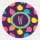 Stilvolle Rose in leuchtend neonenrosa, blau, gelb und korallenfarben mit neongrünen Blätter sind über einen lila Hintergrund gestreut, um ein lustiges Blumenmuster zu schaffen. Passen Sie das Monogramm auf diesem Aufkleber an, um es einzigartig zu Ihrem eigenen zu machen.