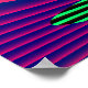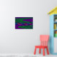 Dieses Plakat zeigt ein digital gestaltetes Bild, das einer Reihe sanfter Wellen ähnelt, die an einem ruhigen Ufer aufprallen. Die Wellen sind in lebhaften Neontönen in Grün, Rosa und Blau gehalten und in 3D-Qualität gehalten.