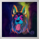 This hand drawn Shepard will look good in any room with its neon colors and dark background.