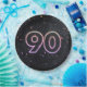 Glühendes Neonzeichen auf schwarzem Hintergrund mit Konfetti für die 90. Geburtstagsfeier.
