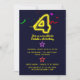 Brillante Einladungen zum 4. Geburtstag mit Neon "4", Sternen und Konfetti.