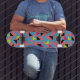 Überraschen Sie alle auf Ihrem nächsten Ollie mit diesem leuchtend neongeometrischen Muster unter Ihrem Skateboard!