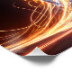 Ein junger Mann auf einem Skateboard wird mitten in der Action gefangen, umgeben von dynamischen und dynamischen Neonwegen, die Bewegung und Energie anzeigen