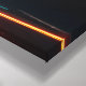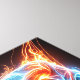 Ein junger Mann auf einem Skateboard wird mitten in der Action gefangen, umgeben von dynamischen und dynamischen Neonwegen, die Bewegung und Energie anzeigen