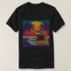 A chilled sloth cradles a steaming cup of coffee on a glowing grid with a bold retro sunset and palm trees, ideal for slow mornings and caffeine fans.