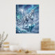 A majestic neon snow leopard stands atop a towering glacier spire, crafted from sleek fur armor textures, glowing frost lines, and luminous feline contours. White, cyan, silver, and icy blue light pulse through its agile frame while piercing eyes survey the frozen horizon. Crystal peaks, drifting snow, aurora skies, fractured ice, and cold mist create breathtaking depth. This premium predator design blends elegance, power, and arctic sci-fi atmosphere, ideal for offices, gaming rooms, and big cat collectors.