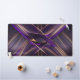 Großer PC- oder Laptop-Schreibtisch oder ausgestrecktes Mousepad mit schwarzen, goldenen und lila Neonlichtlinien in geometrischer Form, die einem Kaleidoskop ähneln. Die Abbildung wird nur verlassen oder mit einem Benutzernamen, Monogramm oder einem eigenen benutzerdefinierten Text am unteren links Rand personalisiert. Ändern Sie die Farbe, den Schriftart oder die Position des Textes, indem Sie auf die Schaltfläche klicken, um das Design zu bearbeiten.