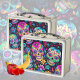 Ein faszinierendes Mosaik von bunten Zuckerschädeln, die im Dunkeln tanzen. Dia De Los Muertos