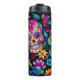 Ein faszinierendes Mosaik von bunten Zuckerschädeln, die im Dunkeln tanzen. Dia De Los Muertos
