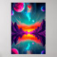 Neon-Synthwave-Alien-Planet-Landschaftsgrafik Poster